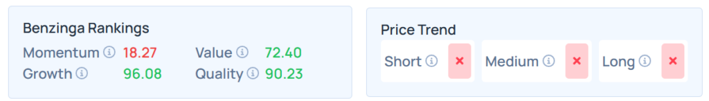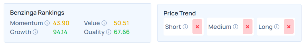 Benzinga Edge Stock Rankings shows that FSLR also has a weaker price trend over the short, medium, and long term. Its momentum ranking was very weak at the 18.27th percentile, whereas its value ranking was strong at 72.40th percentile, the details for which, along with other metrics, are available here.